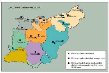 Gipuzkoan, eskualde guztiek, hiribilduek