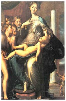 Han margotu zuen bere maisulanetako bat, Andre Maria Santa rLlargarita eta beste santuekin . 1531n Paretara itzuli zen, eta hantxe geratu zen hil zen arte ; azkenaldi horretakolan nagusiak 1Yladourza dal Collo Lungo (1534 ; Uffizi galeria), eta Santa Maria della Stecatako freskoak dira. Azken horiek elizako dekorazio zabal baten parte ziren, baina Parmigianino izugarri luzatu zen bere lanean, eta preso hartu zuten kontratua hausteagatik.