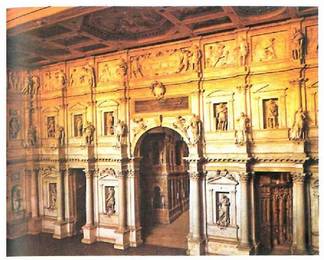 Andrea Palladio (Andrea di Pietro de la Gondola jaiotza izenez) Paduan jaio zen 1508an, baina gazte zela joan zen Vicenzara . Hargin lanetan aritu zen han. 1537an Gian Giorgio Trissino idazleak bere etxea egiteko enkargua eman zion, eta hark jarri zuen harremanetan Vicenzako kultura talde nagusiekin. Trissinorelcin Erromara egin zituen bidaietan (1541, 1545, 1547, 1549) antzinako erailcinalc eta XVI. mendearen lehen erdialdeko arkitektoen lanak aztertu ahal izan zituen. 1549an Vicenzako Kontseiluak Palazzo della Ragione berritzeko enkargua eman zion, eta lan hari esker Palladiok garrantzizko lekua izan zuen Vicenzako aristokraziaren arkitekto gisa. Trissino hil zenean, Daniele Barbaro veneziar prelatuarentzat hasi zen lanean Palladio eta haren aginduz egin zituen Vitrubioren DeArcbitectturct (1556) lanaren edizio baterako marrazkiak; 1554an Erromara egin zuen hidaian Antzinako Erroma lana idatzi zuen, oso arrakasta handia izan zuena.