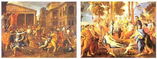Bere lana oso estimatua bazen ere, eta Erromako pintore handienen artean jartzen zuten arren, zirkulu artistikoetatik aldendu zen Poussin. Gainerako artisten helburua Erromako barrokoan leku bat lortzea zenean, Poussinek bere garaiko joerak gainditu nahi zituen, kristau aroaren aurreko erromatar arkitekturak eta jokabide molararen gaineko latindar liburuek inspiraturik, eta orobat Rafaelen lanen noblezia eta handitasunaren ildotik, zeinak, Poussinen ustetan, antzinatasunaren izpiritua berriztatu baitzuen.