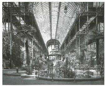 Nazio guztien lehen erakusketa, edo Erakusketa Unibertsala, esan bezala, Londresen egin zen, 1851. urtean. Joseph Paxton (1803-1865) ingeniari autodidakta frantsesa izan zen erakusketa hartarako aretoaren cliseinatzailea, eta arkitektura modernoaren aitatzat hartua da bere Beirazko jauregia deritzon eraikinagatik (deitura hori eman zitzaion erakusketa areto hari). Paiton lorazaina zen lanbidez, Devonshireko dukearen lorazaina hain zuzen, eta lorategietako negutegietan oinarriturik egin zuen beirazko jauregi-negutegi erraldoi h -ren diseinua, burclina eta beira harturik lehengaitzat eta hainbat arkitektura osagai erabiliz (3.300 zutabe burdinezko, 300.000 beira puska etab.). Beirazko munstrotzat hartu zuen zenbaitek bere garaian, garai hura arte sekula erabili ez ziren neurriak erabili baitzituen, baina arkitekturaren maisulantzat hartu zuten beste batzuek ; oro har, sekulako arrakasta eta eragina izan zuen obra hark, hainbesteraino ezen aurrerantzean Erakusketa Unibertsal guztietan hartu baitzen erakusketa aretorako oinarri, adibidez New Yorken 1853an egindakoan (hark burdin urtuzko kupula bat zuen), Parisen 1855ean egindakoan (Pastonena baino bi aldiz zabalagoa), etab. Sute batek hondatu zuen Paxtonen Beirazko jauregia 1937an.