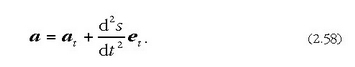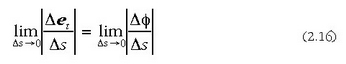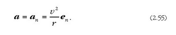 2.4. irudia. Posizio bektorearen bigarren deribatua arkuari buruz 1/r modulua duen eta en unitate bektorearen noranzko bera duen bektore bat da.