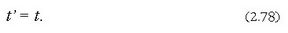 Arestian atera dugun ondorioan esperientziaren araberako hipotesi batzuk eman ditugu. Lehenik, (2.72) deribatu dugunean, ontzat eman dugu bi ikuslek gauza bera ikusten dutela, bata bestearekiko mugimendu erlatiboarekin, bi punturen arteko distantzia neurtzen dutenean, une jakin batean, (erabiltzen dituzten erregelak ez dira mugimendua bitartean ez luzatzen ez laburtzen). Bigarrenik, ontzat eman dugu orobat denbora eskala berbera dutela bi erreferentzia sistema horiek. Azken hipotesi hori (2.75) ekuazioei laugarren ekuazio bat erantsiz adieraz daiteke: