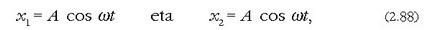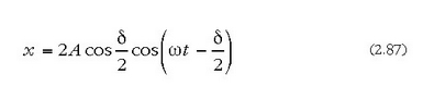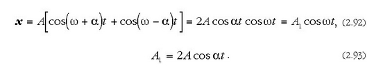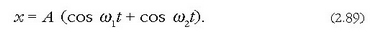 2.18. irudia. Anplitude bera, hasierako fasea zero baliokoa, eta maiztasunak elkarren zertxobait desberdinak dituzten bi dardara mugimenduk pultsazio izeneko dardara bat sortzen dute