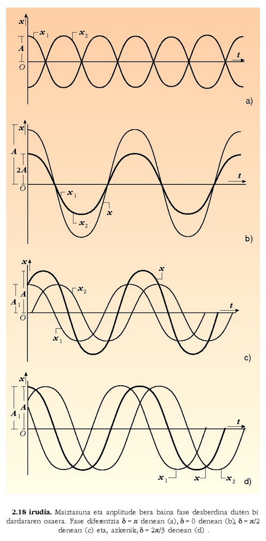 a) Bi dardarek maiztasun eta fase berdinak dituzte, baina anplitude desberdinak. Ekuazio hauetatik