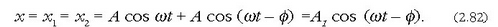 2.16. irudia. Maiztasun eta fase bereko baina anplitude desberdineko bi dardaren osaera.