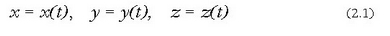 (2.1) ekuazioei ibilbidearen ekuazio parametrikoak esaten zaie. Ekuazio horiek ibilbideko puntu jakin bateko koordenatuak (x,y,z) egokiarazten dizkio t denboraren balio bakoitzari. Ibilbidearen ekuazioa zein den jakiteko, aski da ekuazio parametriko horietatik denbora kentzea.