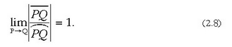Beraz, dr/ds bektoreak kurba P puntuan ukitzen duen ukitzailearen norabide bera du, eta PQ bektorearen noranzko bera, s gehikuntzena, alegia. Haren moduluari dagokionez, limitean, As gehikuntzak zerorako joera duenean, PQ lerroaren luzeraren eta PQ arkuaren luzeraren arteko erlazioa banakoa da; alegia,