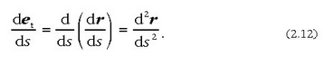 r posizio bektorearen bigarren deribatua kurbaren arkuarekiko, d 2 r/ ds 2, aztertuko da orain; dr/ds-ren deribatua, alegia. (2.9) ekuaziotik hau ateratzen da: