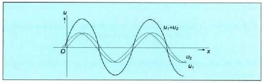 ardatz horren norabide negatiboan hedatzen den uhinaren ekua- zioa. Eman dezagun koordenatuen sorburuan (x = 0) bi uhinak fasean daudela t unean. Gainkatzearen printzipioaren arabera, bi sinu uhinen batura izango da ondoriozko uhina: