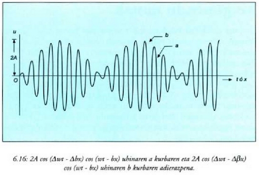 Ekuazio hori uhin osagaien ezaugarri berberak dituen uhin bati dagokio (6.13 irud.), baina uhin honen anplitudea,