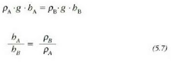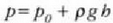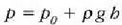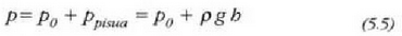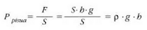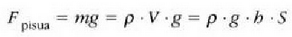 non zutabearen bolumena V baita eta isurkariaren dentsitatea p. Beraz, pisuak eragiten duen presioari adierazpen hau dagokio: