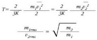 23-7 ekuazioak zuzenean iragartzen du aurreko atalean esperimentu bidez egin den behaketa, zeinaren arabera mol bakoitzeko energia zinetikoa (ia-ia) berdina baita gas guztientzat tenperatura berean. 23-8 ekuazioaren arabera, berriz, T tenperatura berean, bi gas desberdinen molekulen lastertasun koadratikoen erlazioa molekula horien masen alderantzizko erlazioaren bigarren erroaren berdina da. Hau da,
