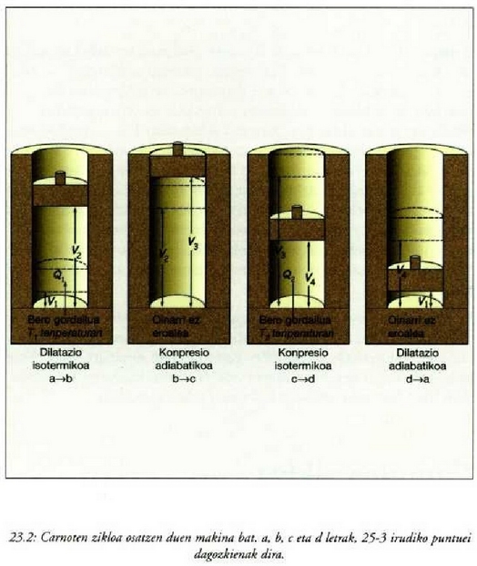 Q bero kopuru jakin bat kenduz gero gasaren T tenperaturari, gas horren entropia Q/T gutxituko da kopuruz