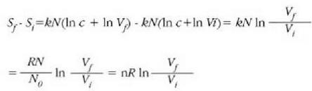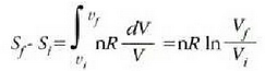 Beraz, V1 bolumenaren egoeran eta Vi bolumenaren egoeran (tenperatura eta molekula kopurua konstante irauten dutela) hau da entropiaren arteko aldea: