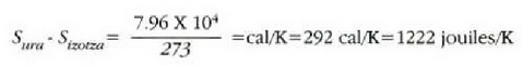 Adibidea. O°C-tan dagoen kilogramo bat izotz O°C-tan dagoen ur bihurtzen da; izotzak urtzerakoan egoera fisikoaren aldaketako beroa 79.6 cal/gin. dela kontuan harturik, kalkulatu izotz horrek izan duen entropia aldaketa.
