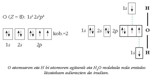 (bata oxigenoarena eta bestea hidrogeno batena) erabiliko dira lotura kobalente bat gauzatzeko. Oxigenoaren eta beste