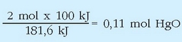Ekuazio termokimiko batek ematen duen informazioa ez da hor amaitzen: 2 mol HgO (edo beste era batera adierazita, 2 x 216,6 = 433,2 g HgO) deskonposatzeko, erreakzioaren arabera, 181,6 kJ behar dira. Zenbat HgO deskonposa daiteke 100 kJ energiarekin?
