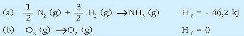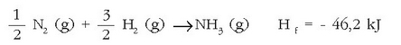 eta erreakzio horri dagokion entalpia aldaketa amoniakoaren eraketa entalpia izango da. Erreaktiboak biak gas egoeran adierazi dira, gasak direlako izan ere, egoera normaletan.