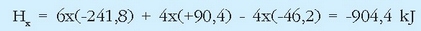 Erreakzio termokimiko horiek (x) = 6(c) + 4(d) - 4 (a) erlazioa betetzen dutenez, Hess-en legea erabiliz: