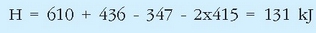 Dagokion erreakzio entalpia lortzea erraza da, erreakzioan parte hartzen duten gaien eraketa entalpiak ezagunak badira. Taulan daude behar diren datu guztiak: