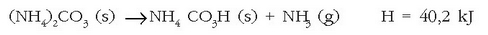 Goian aipatutako delakoaren erreakzioari aplikatuko diogu irizpide hori. Gauza jakina da H positiboa dela. Amonio karbonatoa apurtu egiten denez eta, gainera, gas bat eratzen denez (amoniakoa), entropia handiagoa egingo da prozesuan zehar. Beraz, - T S negatiboa izango da eta G negatiboa ala positiboa izango da, aipatutako terminoen balioen arabera. Jarritako adibidean giro tenperaturan ere, termino entropikoa, T S, handiagoa da entalpikoa baino, H; beraz, G negatiboa izango da eta prozesua berezkoa.