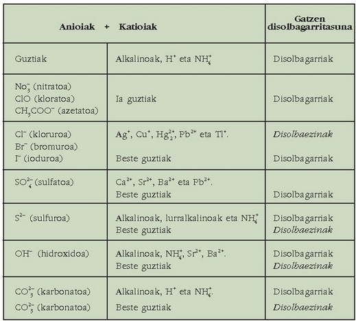 Hauek izan daitezke, adibide, konposatu disolbagarri horiek: