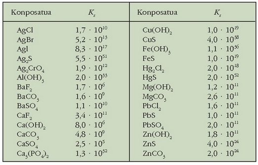 Disolbagarritasun-biderkadura tenperaturaren menpe dagoen magnitudea da eta normalean 25ºC-tan eman ohi da. Taulan zenbait gatzen disolbagarritasun-biderkadurak ikus daitezke.