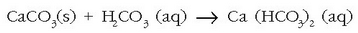 Ura lurraren gainazaletik eta lurrazpitik igarotzean, azido karbonikoak kararrien kaltzio karbonatoarekin erreakzionatzen du eta disolbagarriagoa den hidrogeno karbonatoa ematen: