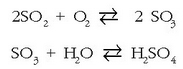 eta eguratseko oxigenoarekin eta ur lurrunarekin erreakzionatzean, azidoak sortzen dituzte: azido sulfurikoa