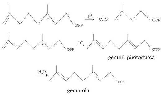 Geraniola terpenoen familiakoa da; horiek dira landare eta lore gehienen usainaren eragileak. Landareetatik olio usaindunak lortzeko, landarea uretan destilatu behar da; destilatzean bereizten den olioak oso usain berezia izan ohi du. Laboratorioan terpenoak azido azetikotik abiatuz lortzen dira, isopentil pirofosfatoarekin erreakzionaraziz.