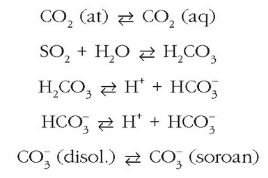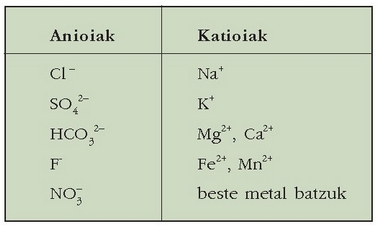 Lurzoruaren izaerak eta urak lurzorua ukitzen daraman denborak mugatuko du zein ioi eta zein kantitatetan dauden. Gainera urak oxigenoa eta anhidrido karbonikoa hartzen ditu airetik. Anhidrido karbonikoak karbonatoekin oreka desberdinak emango ditu eta beroriek mugatuko dute uraren pH-a.