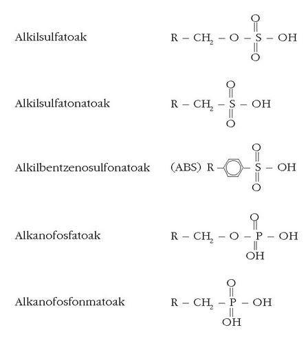 Garbikari hauek xaboi naturalak ordeztu dituzte. Ondorengo familia hauetakoak izaten dira: alkilsulfatoak, alkilsulfonatoak, alkilbentzenosulfonatoak (ABS), alkanofosfatoak eta alkanofosfonatoak.