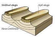 antiklinalak, eta bestetik, gune ahur edo sinklinalak, elkarren jarraian.