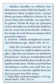 Ikerketa hauek Britainia Handian bideratu ziren aldi berean, Gizarte Zientzietan berealdiko garrantzia izango zuten ikerketa enpiriko batzuk ari zen egiten E. Durkheim (1857-1917) Frantzian, gizarte teoriaren eta ikerketaren arteko elkargunearen bila ari baitzen. Durkheim-en lanak ez ziren ikerketa zehatzetara mugatu, Gizarte Lanaren banakuntza (1893) edo Suizidioa (1897) lanek iradokitzen diguten bezala, eta oraingo honetan bereziki interesatzen zaigu soziologiaren metodologiaz idatzi zuen liburua, gai horri bereziki heldu zion lehena: Metodo soziologikoaren arauak, 1895ean argitaratua.