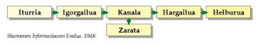 Horrela, Informazioaren Teoria Matematikoa, telefono bidezko transmisiorako sortua, Komunikazioaren Teoria Orokorra eraikitzeko oinarri sendo bihurtu zen. Linguistikan, psikologian soziologian eta are politologian ere eragin handia lortu zuen planteamendu teoriko honek. Oinarrian honako premisa agertzen da: komunikazioa informazioaren transmisioa da, mutur batetik bestera. Premisa honek bat egiten du grekoek Hermes jainkoari ezagutzen zioten eginkizunarekin (bere azkonaren muturraz mintzakide baten burutik ideiak hartu eta bestearen burura sartzen zituen). Era berean, bat dator gure kulturan oso erratuta dagoen tradizio filosofikoarekin, zeinaren arabera gizakia gorputz batean itxita bizi den arima baita; gorputzak burutuko lituzke kodetze eta deskodetze lanak, eskemaren bi muturretan (iturria eta helburua) arima edo gogoa agertuko lirateke. Ikuspuntu honen arabera, komunikazioa zera izango da: pertsona bati gure esperientzia (zentzumenez jasoa, pentsatua zein sentitua) transmititzea, horretarako seinaleen garraiorako sistemaren bat erabiliz.