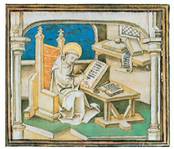San Bernardo, zistertarren fundatzailea, XV. mendeko miniatura batean.<br><br>