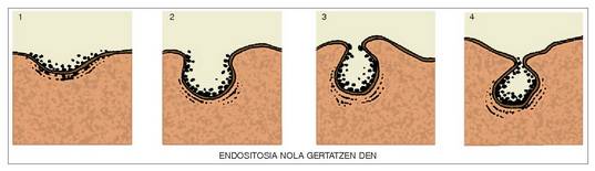 esaten zaio, eta horren barruan bi aldaeradaude: fagozitosia eta pinozitosia. Fagozitosian