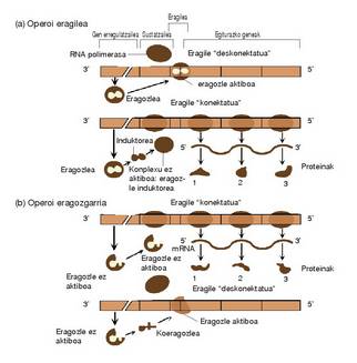 Operoiaren eredua Proteinen biosintesi mekanismoa ikusita, irudi luke proteina guztien sintesia jarraitua eta bereizketarik gabea dela. Hala ere, frogatua dago une jakin batean ez direla une horretan behar diren proteinak eta behar diren kopuruan baizik sintetizatzen. Horretarako, genearen jarduera erregulatuko duenmekanismo bat behar da. Operoia da mekanismo horietako bat, Jacob-ek eta Monodek 1961ean proposatua.