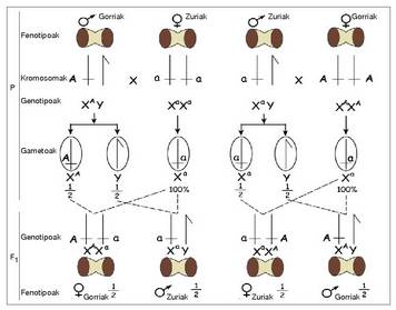 semeen fenotipoak amaren genotipoa adierazten