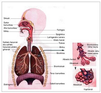 da gas trukea. Albeoloek eta bronkio nagusietatik abiatzen diren hurrenez hurreneko adarkadurek