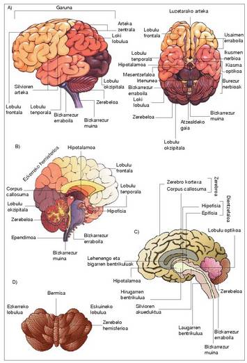 Horrela deitzen zaio burezurreko kaxaren barruan dagoen nerbio sistemaren parteari (3. irudia).Bi nerbio ehun mota ditu: gai grisa eta gai