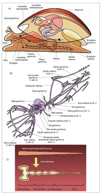 ondorioz garuna eta bizkarrezur muina sortu ziren. Nerbio sistema zentrala, garunak eta