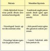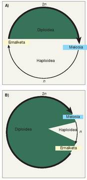 Aldakortasun mailari buruz (1), esan beharra dago organismoek gameto mota desberdin asko era ditzaketela. Eman dezagun gameto bakoitzak n kromosoma kopuru haploidea jasotzen duela, jatorrizko zelulak zituen 2n kromosomen erdia alegia.