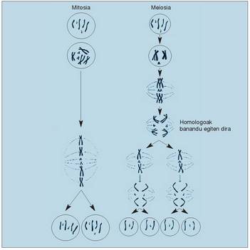 LABURPENA: Meiosia sexu bidezko ugalketarekin lotura duen zelularen gunearen zatiketa modu bat da. Zatiketa mota honen helburua da sexu zelulek (gametoek) kromosoma kopuru haploidea izatea, izaki mota bakoitzari dagokion kromosoma kopuruak aldagabe iraun dezan.