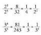 Hau gertatzen da:Bestalde, berretzaileen arteko diferentzia 2 da : 5 - 3 = 2Emaitza ez da oinarriaren araberakoa :eta 5 - 2 = 3.Oro har, oinarria berbera baldin bada, eta zenbakitzailearen berretzailea izendatzailearena baino handiagoa baldin bada, zenbakitzailearen eta izendatzailearen biderkagaiek elkar sinplifikatzen dute, eta oinarria berretzaileen arteko kendurak berreturik geratzen da. Oinarria zenbaki arrazionala denean, edozein, (a), baina ez zero, eta m>n delarik, hau betetzen da :Izendatzailearen berretzailea zenbakitzailearena baino handiagoa baldin bada, orduan orobat sinplifika daiteke, baina berretzaile bat geratuko da izendatzailean :Halakoetan,Oro har, baldin n>m bada, biderkagaiak sinplifikatu egiten dira, eta hau betetzen da :Aurrekoa ikusirik, hau proposa daiteke berretzaile negatiboentzat :Baina kasu horretan,behar du izan• Adibidez:Oinarriaren zeinuek berretzaile positiboek bezala eragiten diote emaitzari :