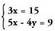 sisteman lehenengo eragiketa x bakantzea da..  = 5 ateratzen da.Ondoren, balio hori beste ekuazioan ordezkatzen da eta y bakantzen da.