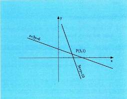 Ondoren koordenatu ardatz batzuetan adierazten dira.P puntu baten koordenatuak (x,y) sistemaren emaitza izan daitezen, puntu horrek bi lerro zuzenak ukitu behar ditu. Grafikoan ikus daiteke puntu hori (3,1) puntua dela. Puntu hori bakarra da eta proposatutako sistemaren emaitza da.Bedi bi ezezagun dituzten bi ekuazio lineal :Sistema hori grafikoki ebaztean hiru kasu ager daitezke :1. Lerro zuzenak elkarren ebakitzaileak badira, puntu komun bakarra dagoSistemaren emaitza bakarra puntu hori da.betetzen da.2. Lerro zuzenak paraleloak badira, lerroek ez dute puntu komunik eta sistemak ez du emaitzarik.betetzen da eta ez dago K zenbaki errealikbetetzen duenik.3. Lerro zuzenak bat badatoz, puntu infinituak dira ekuazioaren emaitza.betetzen da eta K zenbaki erreal bat dago hau betetzen duena :Hiru kasu horiei dagozkien grafikoak hauek dira :
