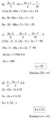 13. Ebatzi inekuazio hauek :14. Ebatzi inekuazio sistema hauek :