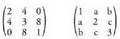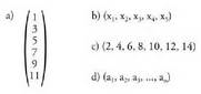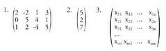 Bata bestearen segidan ipinitako zenbaki edo algebra ikur multzoei, zenbaki edo algebra ikur zerrendak deitzen zaie. Horizontalean (lerroak) edo zutika (zutabeak) egon daitezke, ondorengo adibideetan ikusten den bezala :